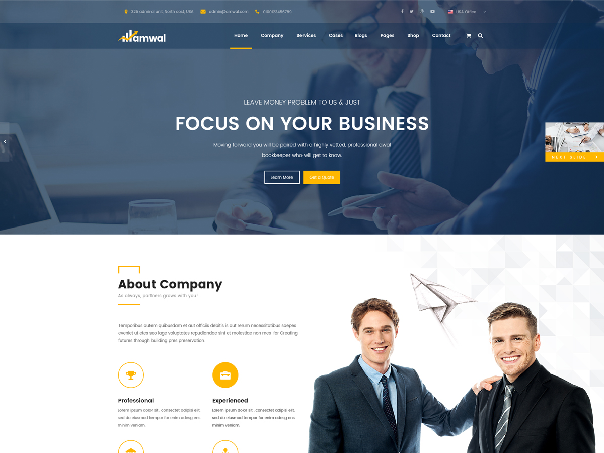 Amwal is a premium Finance, Consulting, and Corporate WordPress Theme crafted for financial advisors, accountants, consulting firms, investment companies, insurance agencies, and tax service providers. Designed for performance and professionalism, Amwal delivers a modern layout with advanced features to help businesses establish a powerful online presence.